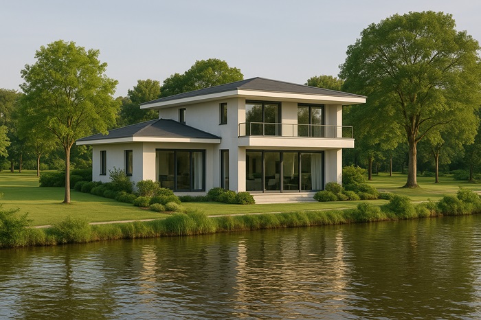 • Khái niệm: Biệt thự ven sông là loại hình biệt thự cao cấp tọa lạc gần sông, hồ hoặc kênh rạch, được thiết kế hướng ra mặt nước, tận dụng cảnh quan và giá trị sinh thái.